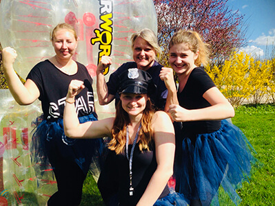 Vores Bumperballs spilles altid udendørs. Rigtig fodbold skal spilles udendørs med rigtigt græs at falde på og det er ingen undtagelse med Bumberballs. Vi garanterer en sjov og nyfortolkede fodbold oplevelse. I starter oplevelsen hos Escape Zone og går derefter ca. 250 meter hen til en fodboldbane, som I skal spille på. Vores instruktør viser jer vejen hen til banen, som vil være hos jer under hele oplevelsen. Det er en rigtig god ide at medbringe eller købe kolde drikkevarer hos os, inden start, da I helt sikkert får pulsen op.