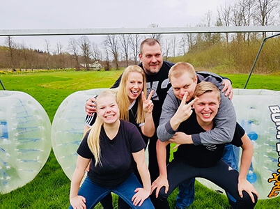 Hos Escape Zone inviterer vi til en sjov og anderledes omgang fodbold – bedre kendt som Bumberballs. I bliver udstyret med en Bumperballs, som er en oppustelig dragt i skal have på og en fodbold – og så er det ellers også bare i gang. Fordelen ved at spille Bumperballs er at du kan tackle dine venner eller give et kærligt skulderskub uden at nogen kommer til skade eller få blå mærker.