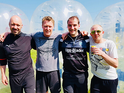 Bumberballs er det perfekte arrangement til alle der elsker fart over feltet, masser af grin og et strålende humør. Vi garanterer en sjov og hæsblæsende dag. Er man mere til at stå på sidelinjen så bliver oplevelsen bestemt lige så sjov, når enten venner/veninder eller kollegaer bliver skubbet rundt og triller på hovedet. Et perfekt arrangement uanset om det er til en børnefødselsdag, man fylder rundt eller man skal være aktivt med kollegaerne.